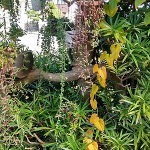 秋晴れの良い日です☀️😊 ネックレス系の中にいつの間にか山芋のつるが‼️😲 いち早く紅葉してますが😄🍁