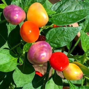 今朝の1枚 観賞用唐辛子🌶 寄せ植えにした最初の頃は、紫色だった唐辛子が黄色、オレンジ、赤へ変化🌶 紫色しかなかった寄せ植えの中で、アクセントカラーになって、それはそれで面白い😆😆