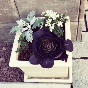 葉牡丹❇ 黒葉牡丹🎵 この葉脈✨シックな大人っぽいのが気に入って😆 はじめて寄せ植えにしました …が全然いけてないんです…(¯―¯٥) 難しい💦 寄せ直ししよう… 全体は恥ずかしくて見せれないので…葉牡丹だけ🎵