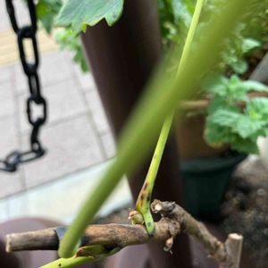 おはようございます つい先日切り戻したペチュニアに、早くも蕾らしきものが