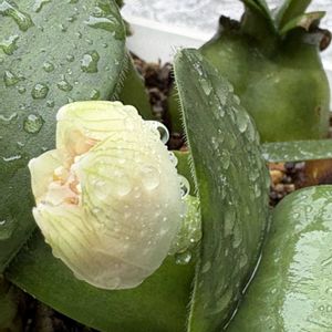 マユハケオモト。 お子さんが出てきた。 分球しやすいタイプのマユハケオモトらしいから広めの鉢にしたんだけど、球根と球根の間の狭い所から出てくるとは...。 思ったようにならないものだ。
