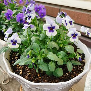 初めてのお迎えにワクワク😄💕 ①すみれ図鑑💛🩵💙 多彩な色が入ったニュアンスカラー✨ ②ビオラ シュシュの約束💜 淡いラベンダーがアンティーク風 小輪多花性✨ 天の羽衣 ふわふわのフリルの淡い優しいピンクカラー ③横浜セレクション フレアーブルー💜💙 やっと近くの園芸店に登場しました✨ 嬉しい💕 パンビオの成長が楽しみです😊💘
