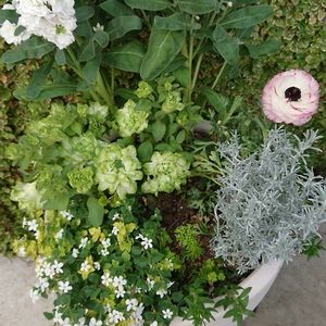 ラナンキュラスって難しい。もう花芽が上がってこなかったのであきらめて掘り上げ、 そこに、湘南ヴェルデを植えました! 緑の花って好き✨