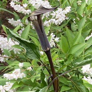 マムシグサの仲間、アリサエマ サキサタイルが咲きました🤍。 ベロ〜ンとニンニクの芽が出てるみたいです😆