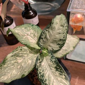 3COINSで買って来たディフェンバキアと書いてあった植物 素敵な模様だったので、思わずお持ち帰り。 苔玉は可愛いけど苦手なので、バラして、冬はあきこの温かい水槽に入れておこうと思います🥺🥺 後ろで写っている転覆金魚は【てんぷくちゃん】 今年のバレンタインデーにうちで産まれた卵から産まれた子。 稚魚の頃から転覆🥺🥺 冬はこの子もあきこの水槽へ。