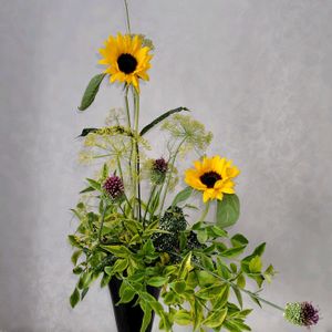 アレカヤシさんを面白くカット✂️してみました 先生🧑🏻🦰「素敵ですね もうひとつ足してみましょう」と手前に帆船の帆のようにカットしたのを足してくださり…🌴 高さを出した分下の方をまとめる感じにしてみたら…自由花‼️な仕上がりになりました🙌😆💕💕 連日札幌も暑すぎる日が続いて明日の予報では36℃まで上がるようで⤴️… 普段は涼しい玄関に生け花を飾っているのですが暑さ続きでそこもキビしく…どこに置くかと…🤔 イタズラ小僧🐱✨が居るので場所探し中です💐😑