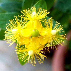 ヒペリカムのお花🌸 みーんな実になってるなってるのに、 ゆっくりマイペースに咲いた1輪♡😊