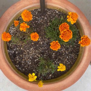 ミニひまわりビッグスマイル🌻 昨年も育てたミニひまわり。 こちらは種ができないタイプだから、新たに種を購入しました。 先に8つ種を蒔いたうちの発芽した6本を植え付けました。 新たに蒔いた8つと残りの2つも発芽しますように🌱