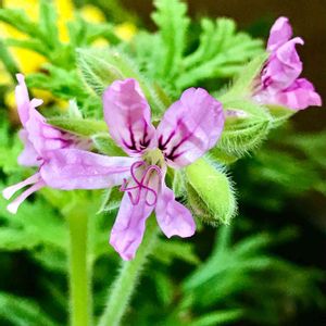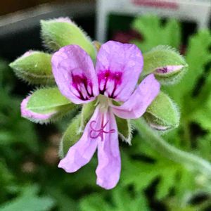 先ほどアップしたのとは別のローズゼラニウム。 こちらが、次々と咲き始めました。 意表を突かれました😅 真ん中の赤くて細いの、くるんくるんと5本あるのが可愛い😍