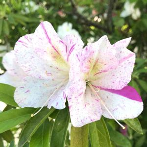 つつじ。 混じりっぽいけど、ほぼ白色。 一本の木って聞いていたけれど、どう考えても、ピンク・濃いピンク・混じり…3本はある気がします。 なんなら4本以上🤣 天国まで聞きに行くわけにはいかないから、花が咲き終わったら、根元を確認してみます😅