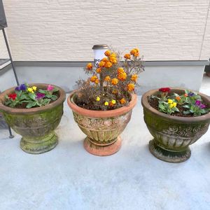 真ん中のマリーゴールドは、踏ん張って長いこと咲いてくれました🧡 12月中旬。