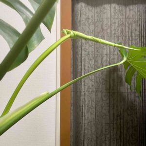 16時33分。 モンステラの新葉のマキマキがゆるんで、開いてきました🤗