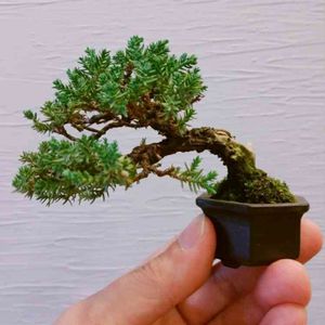 ハイビャクシン 盆栽界では磯馴(ソナレ)。 今朝 NHKで 若い人に盆栽が流行っている と聞いたので、たまには盆栽を。 根本がちょっと膨らんで、良い感じになってきたけど 今年は葉数が出なくて弱々しい感じ。暑さのせいで水切れが早かったせいか。😅 テレビでは 映していたのは真柏の舎利幹ものばかりでしたね。こいつも舎利幹作ってみようかなあ。。。