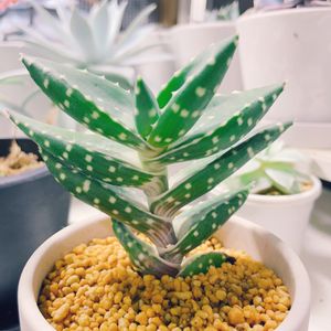 今月はもう植物はお迎えしないぞ😤😤😤 と思ってたのですが私の師匠から 緊急連絡があり 「ダイプーが次のレベルになる にはあと200EXPが必要じゃ」 じゃなくて🙄 「ダイプーよ、ソナタが狙っておった アレニコラの出物があるぞよ」 とのお導きがあり、師匠の意向には 逆らえない私は思わずポチッと...🤣🤣🤣 (完全に人のせいにする) アレニコラさん😊 ドット模様の可愛いアロエさんです🤩🤩🤩