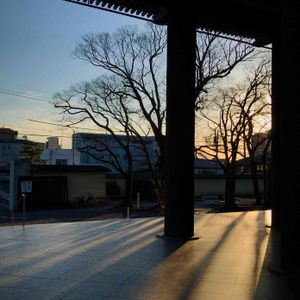 夕方五時までなので 山門から奥に行く時間はナシw ほんの少し五重塔を眺めて振り返ると 夕暮れになってました🐰