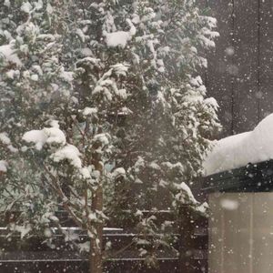 本日2枚目 雪の降ってる所を撮って見ました❗️ どうなんでしょう🤔 この木には春からクリスマスツリーじゃないかと言う位プランツが飾られます🤣🤣💦💦