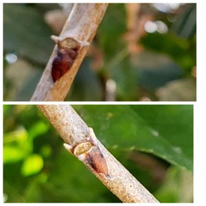 クイズ冬芽·葉痕 可愛い可愛いbabyちゃんたち ↑「あたち、おててモミモミできるんだぁ✨」(人間でいえば生後3~4カ月相当) ↓「僕なんかばんざーいができるんだよ 母さんのマネしてるんだ」(人間に例えれば生後10~12カ月相当) 完全に擬人化してますね(´ω`) この木の名前は明後日2月4日に書き加えたいと思っています ****** 追記(2024.2.4) さてこの植物は 「ヘクソカズラ」です ****** 訂正いたします!!(2024.2.13) この植物は「フジ」です! 冬芽·葉痕の先輩諸氏( わすれなぐささん すずはなさん かしさん )からご指摘いただき判明しました どうもありがとうございました この間違いは その生け垣の中にヘクソカズラが植わっていることは前からわかっていたけれど フジも同じ場所に 株が競いながら育っていることを認識してなかったため起こりました この枝はヘクソカズラに違いないという思い込みです 本来の冬芽·葉痕と大きく違っていたら別の樹木の可能性をしっかり検討すべきでした 間違いを生じ皆様には大変にご迷惑をおかけしました