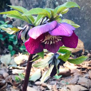 鶴舞公園散歩♫から 力強く咲くクリスマスローズさん✨ 強風にも負けない茎 地面にしっかり根をはってます🐰💗