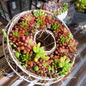 セダムのピカピカちゃんたちを集めたリース✨ オーロラ、乙女心、虹の玉 玉葉等‥陽射しに煌めいてとっても綺麗です(❁´ω`❁)*✲゚*✨