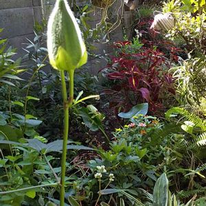 花友さん宅です❤️ 花友さんが写した花オクラの写真をお借りしてpikしました💕花びらを味噌汁に入れたりサラダに🥗入れて食せるそうです。何でも食べたい私は種を頂いて来年植えてみようと思います😁✌️お返しにローゼルの種を差し上げます😊❤️