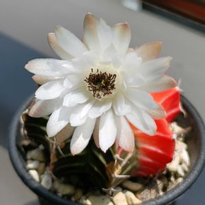こんばんは☺️ 久しぶりに晴れました☀️ ただ、風が強い🍃🌀🍃🌀🍃 今もビュンビュン吹いてます🌬💨 家の中に取り込みは考えたけどやめちゃった😅 みんな頑張って耐えてくれ〜📣 ギムノカリキウム 緋牡丹錦×LB2178❣️ 元々朱色っぽい赤だったけどなんだかピンクっぽく変化してる 今は緑が薄くなっているので余計にそう見えるのかもしれないな〜 外の子はさすがにまだ動きが無い じっと寒さに耐えている あと少しの我慢だね(ง •̀_•́)ง‼