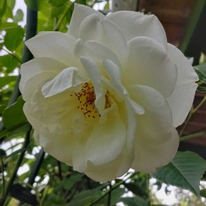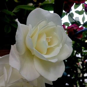 白いバラが大きく開花しました。 黄色ではなかったと言っていた妹ですが、これはこれで、素敵な白ではありませんか。 名前がわからないのが残念です。