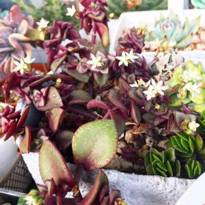 オルビキュラリスの花が咲きました😊 セダムの花より小さな花が密集してて、1つ1つ見ると かわいい〜です🎶