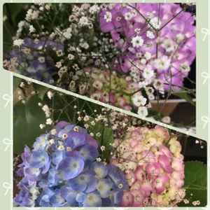 庭の紫陽花とカスミソウを活けてみました。今沢山咲いていて切り放題です。カスミソウの香りって強いのね✨お花活けるセンスは無い💦