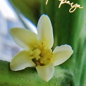 🌴 パパイヤの花 🌴 実生パパイヤに小さなお花が咲いてくれました✨ GSを始める前の去年の夏に、突如プランターから芽を出したパパイヤ😳 その頃は、野菜栽培をしていたプランターに、大根や人参のヘタ、ネギや香菜(パクチー)や芹菜(細いセロリ)の根などの野菜クズや果物の種を何でもポイポイ植えていたので、多分パパイヤもその内の一つ…だと思われ🤣 今までも何度か蕾をつけてくれたけれど、小さな蕾のまま落ちてしまってました😅 日本には家庭栽培用の矮性のパパイヤも売っているようだけど、多分これは中国の南方でスクスク育ったパパイヤだろうから、日照不足気味な上海の小さな鉢植えでは大きく育てられないので、ただの観賞用と割り切って育てていたのに…曇り空続きで寒くなってきたこの時期にお花が咲くとは✨ まぁ、実がなることは無いだろうけど💨 それより、2m(鉢・受け皿込)越えしたパパイヤくん… 4匹の🐱ズが家中自由にしている狭い我が家の何処で越冬させたらいいのか❓ そもそも狭いベランダのドアから家の中に入れられるのか🤔❓(大きく広がった葉は私の両手を広げた以上💦) いっそのこと、ベランダの窓を締め切って、暖房買って温室にしてしまう🤣❓❓ マクロ🔍撮影📸 🏷白い水曜日♡ に参加させてください🍀