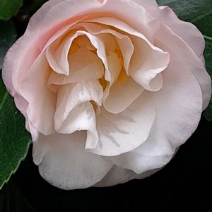 椿で1番に咲いた白い椿さん🎵 名前が分かりませんが葉っぱは斑入りです✨