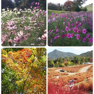 昨日公園に🎶 コキア🎵は 茶色くなってた~ 遅かった😅 コスモス🎵は まだ綺麗に 咲いてた✨ 紅葉🍁 グラデーション🎵 緑んが入ってるのも いいな~💕😍