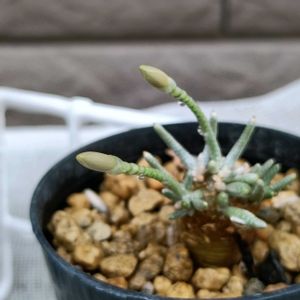 ①クイナリア つぼみらしきものが付いてます。 小さいのにワサワサニョロニョロした感じが とてもカワイイ。😍 ②アルストニー つぼみが大きくなって、重そう。 (見づらいですが、左にあります。) こっちは葉が少なめですが、それもまた カワイイ😀