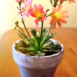 おはようございます😊 急に寒くなりましたね💦 先日コーナンでレウィシアさん見つけて、 あまりにも可愛いいので 連れて来ちゃいました♡ 可憐な感じがたまらんです😊 葉っぱは多肉ぽい感じ、 水やりは少な目で良いそうです。 昨日仕上がったリメ鉢に入れてみました♡