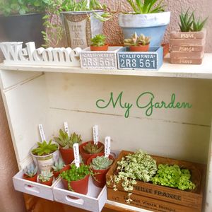 あはようございます😊 大阪は良い天気です♡ 新設多肉棚の2段目はセダムちゃん達のお家。 壁際スペース空いてて寂しかったので、 少し飾り付けしました╰(*´︶`*)╯♡ 今日はコーナンラボに飾り棚 作りに行ってきます!
