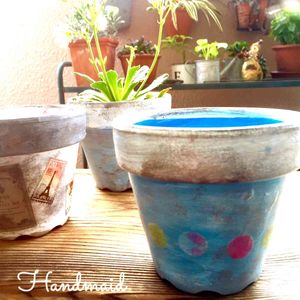 おはようございます😊 いい天気! handmaidシリーズw リメ鉢もコツコツ作ってますよ🎵 今日はお仕事、行って来ます!