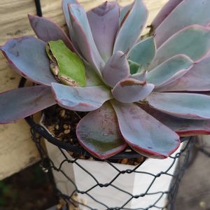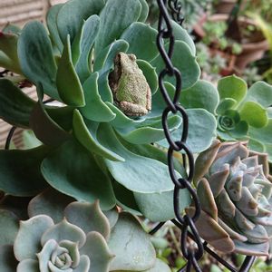 今日も雨。。。☔ 多肉パトは欠かせません。 あらら。。み~つけた🐸🎶 カエルくんたらっ~雨宿り🙄☔? イヤ。。住んでるよね🐸🏡🎶 気持ち良さそう🎵私も住みたいな~🤗