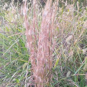冬の山野で冠毛を靡かせてる姿をよく目にしますが、イネ科の外来雑草、メリケンカルカヤですね。 大きくなると背丈よりも高く、太い藁束みたいな姿になって、少しずつ離れて立ち上がります。