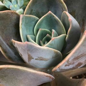 外多肉棚下段寄りのバイネシーさん。 早めに切ったのでコレだけ徒長しなかったやつ、比較的雨晒しだった。 雀斑も出来なかった、理由が判ればなぁ…