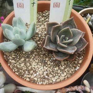 まっちゃんさん、ショーンさんからの頂き物、パート2です。(^^)/ この二つは4寸の鉢に植えつけました。 残りのエケベリアは単体で3.5寸鉢植え付け。 ありがとうございました。m(__)m (^^)