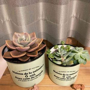 寒いので🏠中で 寄せ植え作ってみました 手前の星の様なのが ブラックプリンスの赤ちゃん 何個あるのかな