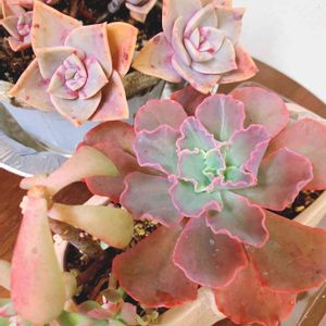 こんにちゎ(*´꒳`*) 2日にジョイ本行ったら新春フェアで多肉さんがお得になってたのでお迎えしちゃいましたー(*ノˊᗜˋ*)ノワーイ♡ 上の3つがそうです♡ 縦長の子が多くて選ぶの難しかったけど、その中で状態良さそうな子を選んできました♡ ピンクプリティとホワイトパールは名前見て絶対可愛くなると信じてお迎え♡ バイネシーはグラプトベリアだから可愛くなるよねきっと♡ あと小さい子達も欲しい子だったので3つお迎えしちゃいました(*´˘`*)♡ 白牡丹♡花うらら♡紅化粧♡ しばらく過保護でいきまーす❣ 牡丹シリーズコンプしたい💖 今度ゆっくり紹介させてね♡ したい人(*´▽`)ノ