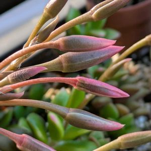 ➡️と↙️最近義母がお迎えした多肉さん💚 3️⃣桜吹雪は私が欲しいなぁって思っていてひとつだけあったので変更してもらいました💕 他は名札すぐ捨ててしまわれるから名前がわからなくなりました😅 ひとまずクラッスラ属でいいのでしょうか⁉️ 2️⃣リトープス3/25脱皮しかけて全部完了したのですが、小さなピンクっぽい子が消えちゃいました⭐️ ↙️は写真からフチベニベンケイとでましたが金のなる木のことみたいですね カネノナルキ(金のなる木、学名: Crassula ovata)は、ベンケイソウ科クラッスラ属の多肉植物。 正式には、クラッスラ・ポルツラケア(英: Crassula portulacea)といい、園芸名では、カゲツ(花月)とも呼ぶとか。 和名はフチベニベンケイ(縁紅弁慶)であるが、あまり使われないそうです。 🏷️8日は葉っぱの発表会 🏷️スライドショー♪