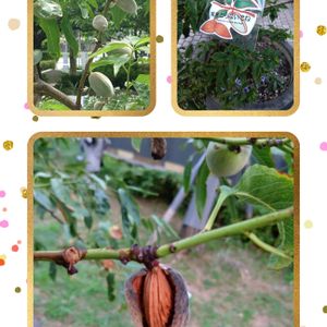 今のアーモンド📸 木の高さは3mくらいが2本🌲🌲 収穫のタイミングなど難しそう