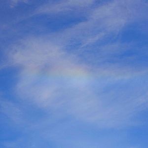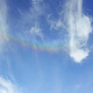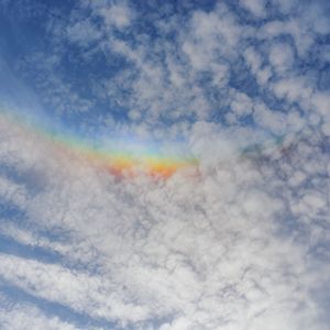 先ほどの環水平アークです。 雲が様々なので繋がった長い1本にはなりませんでしたが、サングラスを外した母でも見えるくらいだったので、それなりの鮮やかさで出ていたと思います。