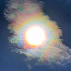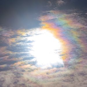 今日の彩雲です。 雲の種類がいろいろなので、彩雲の色づき方もいろいろです。