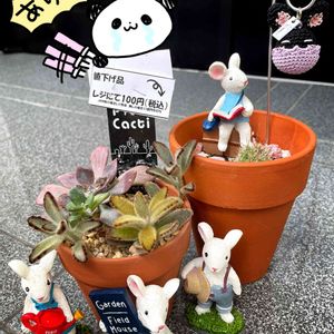 台風💨の影響😵☔️ アンソニーさんの 🏷ウサ耳祭り 参加しまーす💚 HCで なんと この2鉢で100円😳❗️ お辞儀してしょんぼりの子達 お迎え したよ👍 やっと しゃんと立ってくれた❗️ でも 名前が無くて…わかりません💦 チュー君たち お世話頑張ってネ💪🐭 レイジュさんの黒ウサちゃんピック 大活躍‼️