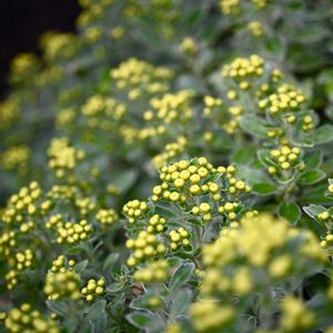 イソギクも咲き始めましたね🌼🎶 キク科 キク属 海浜植物 海岸で出会う前に、植物園で会ってしまいました🥰🎶 綺麗に咲いて⁇🤔🎶 筒状花だけの小さな黄色い花を房状に咲かせる姿が印象的です🌼 葉はやや肉厚で切れこみが入ります。 縁に白い筋があるように見えるのは、葉裏の白色が回りこんでいるからでしょうか🤔🎶