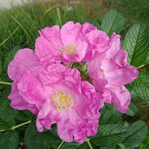 昨日一輪だけ咲いていたハマナス、周囲に蕾が見られたので、撮影を見合わせたら、今朝になって期待した通り花束状態になりました。