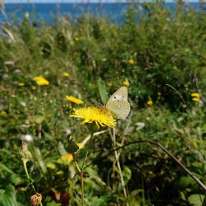 ハチジョウナ(八丈菜) キク科 ノゲシ属 8~10月 0.3~1m 在来種 海岸の砂地や荒地に咲く多年草 特に北国で多く見られる 地下茎を長く伸ばして増えるため、よく群生する ハチジョウナにモンキチョウ♡♡♡ 本音はこのワンショットだけで十分満足だった(笑)😊 ※ 葉は欠刻状の歯牙があり、基部は茎を抱いています 三角状~三角状卵形の総包片も特徴的だと思います(綿毛あり)😍カワユイ 総苞は花後、下部が大きく膨れます