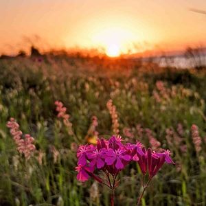 久しぶりに海辺の夕日🌇に間に合いました。 虫取り撫子 濃いピンク色の可愛い花 花のすぐ下の茎に粘着力があります。 アリなどが花に登って来れないように防御してるらしい。くっつけるだけて、食べたりはしない。 まるで〇〇〇〇ホイホイと同じ構造…😅🙏